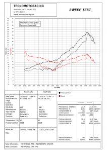 La Yamaha MT09 , fin dal suo esordio, e’stato un enorme successo fra le moto naked,ottimo mezzo gia da originale.Con l’introduzione delle normative EURO5 i proggettesti hanno dovuto(in alcune zone) “castrare” le prestazioni mantenedo le carburazioni abbastanza magre. Montando poi uno scarico o un filtro aria piu performanti la situazione peggiora ulteriormente,”svuotando” ancor di piu la zona dei mediobassi regimi.La situazione puo’ essere migliorata rimappando la centralina originale,soprattutto nella prima parte di erogazione (che e’ quella che si usa di piu in strada). Proprio per questo abbiamo lavorato molto in quella zona dove la moto gia di serie ha questi problemi,che vanno ad accentuarsi cambiando il sistema di scarico e di aspirazione. La nostra rimappatura migliora molto l’erogazione ,rendendola piu piena,reattiva e lineare nella zona 0-50% di apertura gas,la piu utilizzata su strada soprattutto nell’uso quotidiano della moto.Per chi volesse di piu possiamo eliminare le varie limitazioni di serie (coppia e potenza nelle prime 3 marce e vel max) A fonto pagina troverete i grafici della prova al banco,alle varie aperture gas,dove si vede subito la differenza con la nostra mappa(linee spesse)